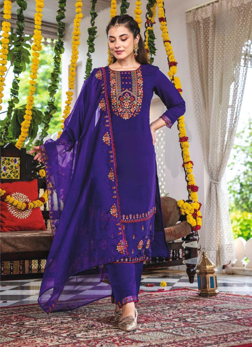 The deep purple embroidered straight salwar kameez exudes luxury and elegance. Crafted with detailed embroidery on high-quality fabric, it offers a perfect fit and comes with a matching bottom and dupatta, ideal for festive occasions and special events.