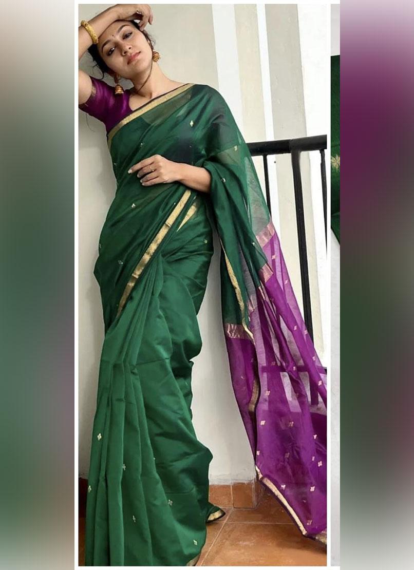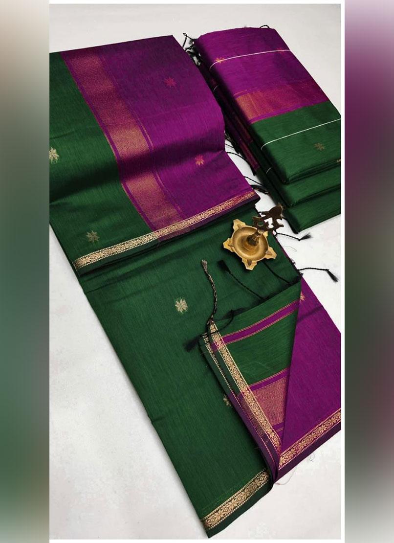 This Silk Cotton Saree features a premium fabric with a soft, lightweight texture. Its sleek border work on both sides adds refinement, while the contrast pallu and blouse enhance visual appeal. Delicate woven motifs across the saree further elevate its artistic elegance.