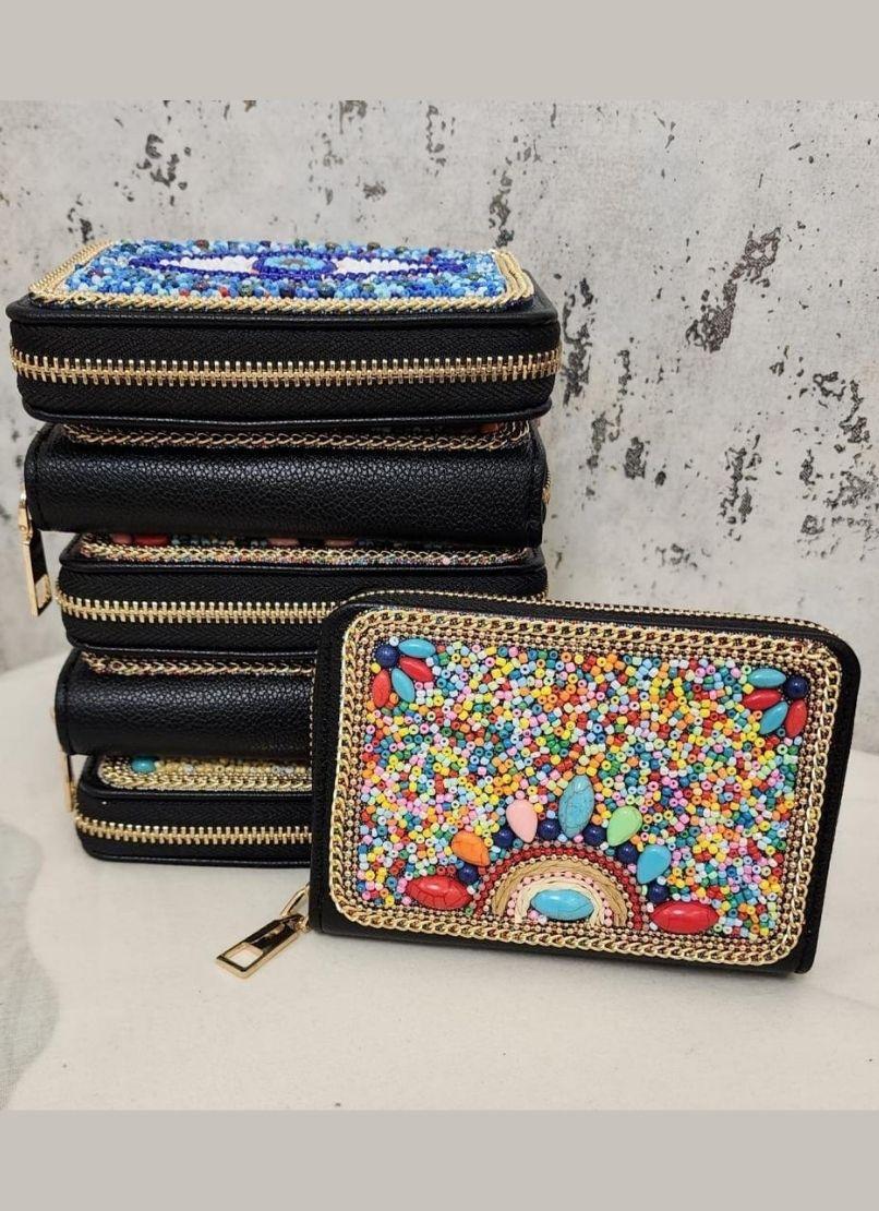 Crafted from black fabric, these compact wallets feature vibrant multicolor beadwork, gold-toned zippers, and sections inside for cash, cards, and coins. Measuring 5 inches by 4 inches, they combine elegance with practicality, making them perfect for everyday use or festive occasions. Lightweight and stylish, they?re ideal for adding a touch of charm to your accessories collection.