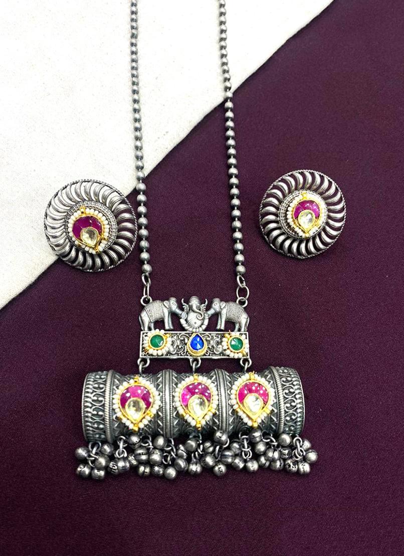 This gold choker necklace features intricate elephant motifs and gemstone accents framed by fine gold engravings. Matching earrings mirror the elegant design, making this an ideal statement piece for traditional occasions.