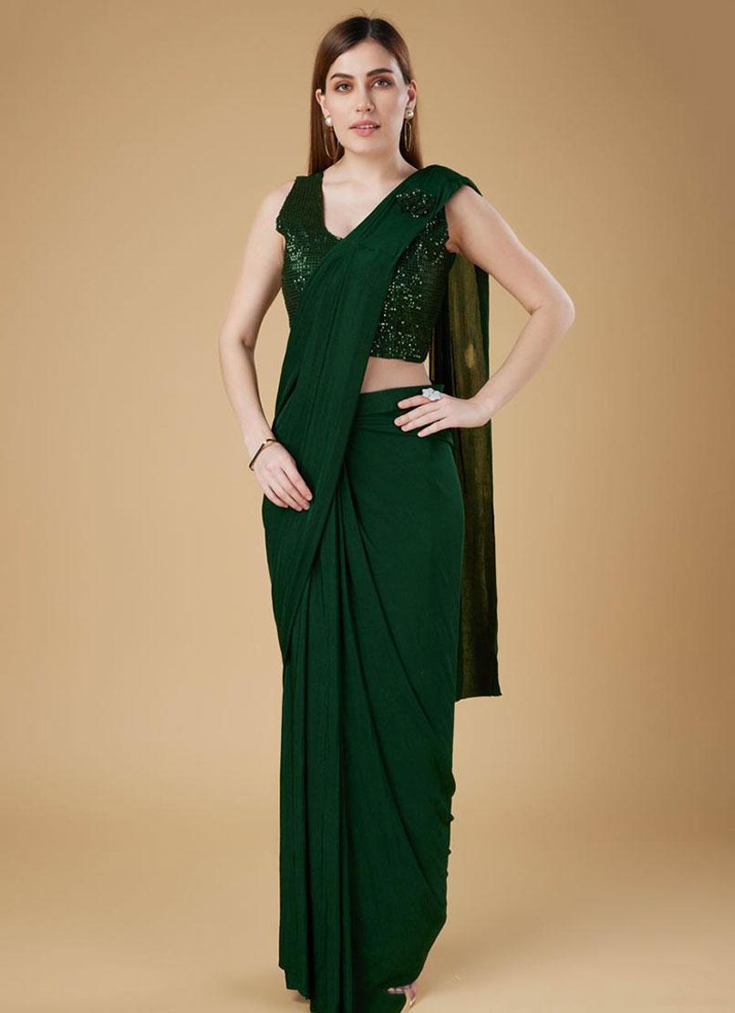 This stunning ready-to-wear party saree comes with a matching blouse, crafted from imported crush fabric with elegant sequin embellishments. Designed for effortless draping, it offers both sophistication and comfort. Available in small, medium, and large sizes.