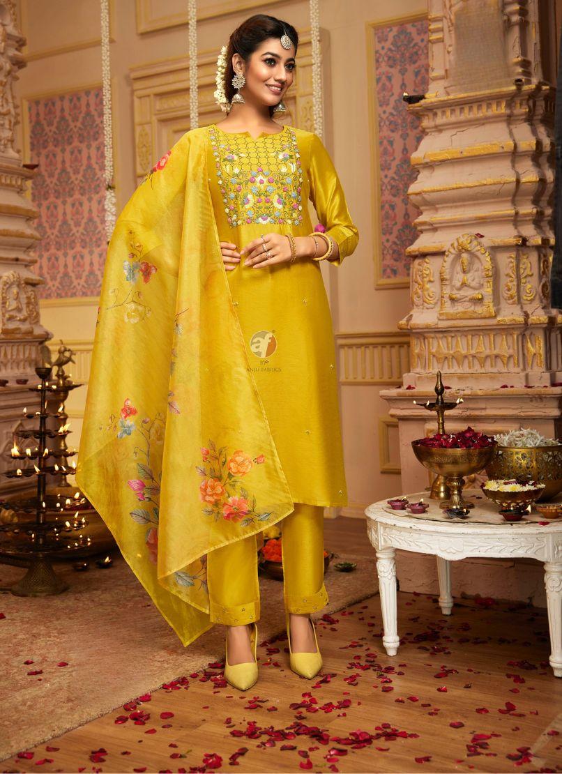 Brighten your look with this elegant yellow embroidered straight salwar kameez. Featuring intricate floral embroidery on soft, breathable fabric, it combines traditional charm with modern style. The straight cut ensures a flattering fit, while the accompanying dupatta adds a graceful touch. Perfect for festive occasions or casual outings, this ensemble effortlessly blends comfort and sophistication.